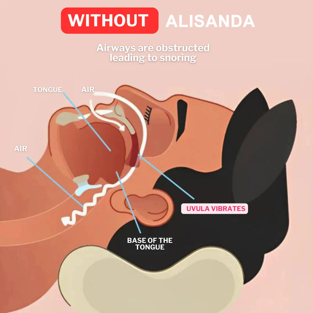 Snoring happens when the muscles in your throat relax during sleep, narrowing your airway and causing vibrations. The Alisanda Snore-Reducing & Teeth-Grinding Guard Mouthpiece solves this naturally and effectively.
